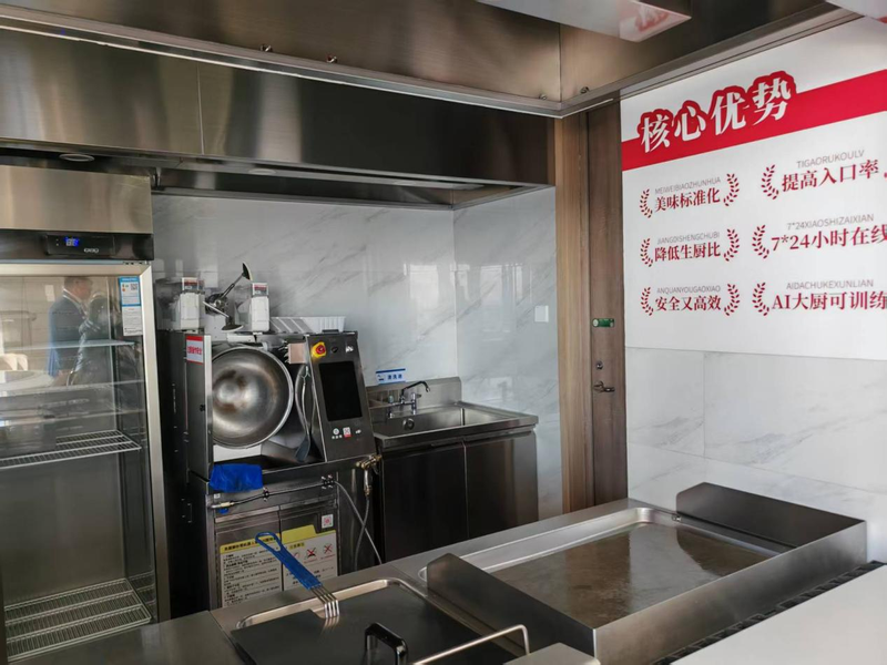 邮储银行北京分行的“炒菜机器人”体验区。新京报贝壳财经记者黄鑫宇 摄